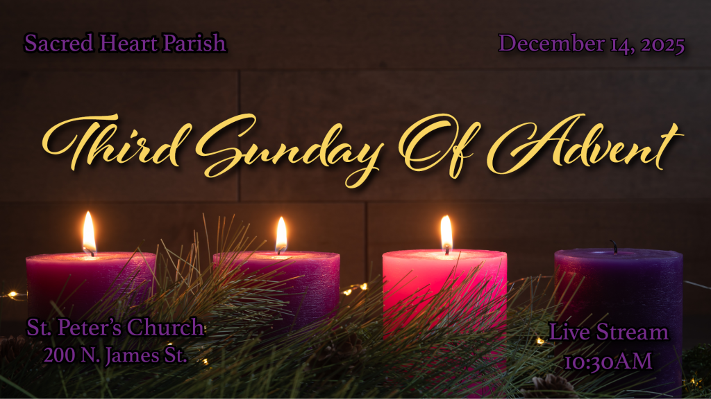 HOME Christmas Mass Schedule Mass Schedule at St. Peter’sSunday:10:30 AM, 6:00 PMLive Stream: 10:30 AMWeekdays:Monday, Wednesday, Friday – 7:00 AMTuesday, Thursday – 8:00 AMPlease check our website(stmarysstpeters.com) and Facebook Page (Sacred Heart Parish, Rome NY) for additional information. Our live stream is available here. SUNDAY DECEMBER 14, 2025 LIVESTREAM MASS SOLEMNITY OF THE IMMACULATE CONCEPTION LIVESTREAM HOPE APPEAL 2025 Click on the "Prayer Corner" and take a moment to "Pray With Us".