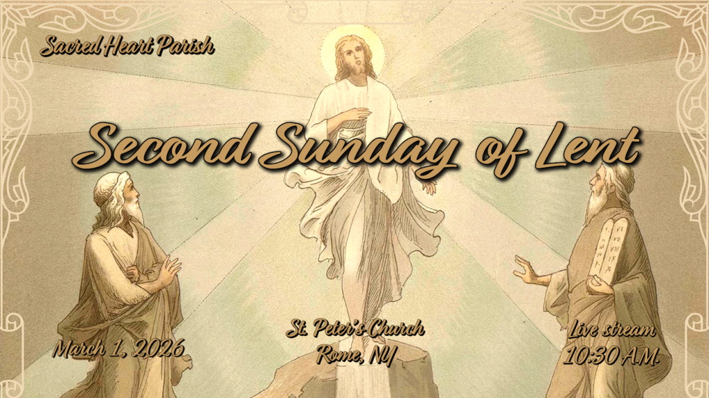HOME Mass Schedule at St. Peter’sSunday:10:30 AM, 6:00 PMLive Stream: 10:30 AMWeekdays:Monday, Wednesday, Friday – 7:00 AMTuesday, Thursday – 8:00 AMPlease check our website(stmarysstpeters.com) and Facebook Page (Sacred Heart Parish, Rome NY) for additional information. Our live stream is available here. SECOND SUNDAY OF LENT LIVESTREAM FIRST SUNDAY OF LENT LIVESTREAM Click on the "Prayer Corner" and take a moment to "Pray With Us".