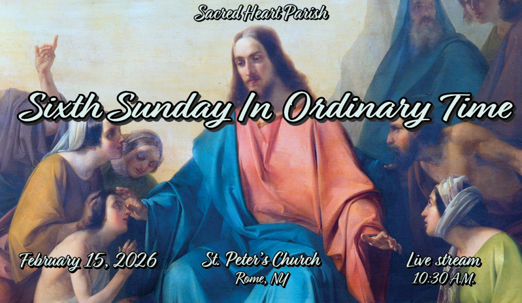 HOME Mass Schedule at St. Peter’sSunday:10:30 AM, 6:00 PMLive Stream: 10:30 AMWeekdays:Monday, Wednesday, Friday – 7:00 AMTuesday, Thursday – 8:00 AMPlease check our website(stmarysstpeters.com) and Facebook Page (Sacred Heart Parish, Rome NY) for additional information. Our live stream is available here. FOURTH SUNDAY IN ORDINARY TIME LIVESTREAM MASS Request for Proposal (RFP) Click on the "Prayer Corner" and take a moment to "Pray With Us".
