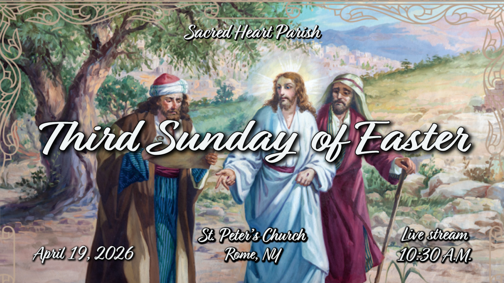 HOME Mass Schedule at St. Peter’sSunday:10:30 AM, 6:00 PMLive Stream: 10:30 AMWeekdays:Monday, Wednesday, Friday – 7:00 AMTuesday, Thursday – 8:00 AMPlease check our website(stmarysstpeters.com) and Facebook Page (Sacred Heart Parish, Rome NY) for additional information. Our live stream is available here. FOURTH SUNDAY OF LENT THIRD SUNDAY OF LENT Click on the "Prayer Corner" and take a moment to "Pray With Us".